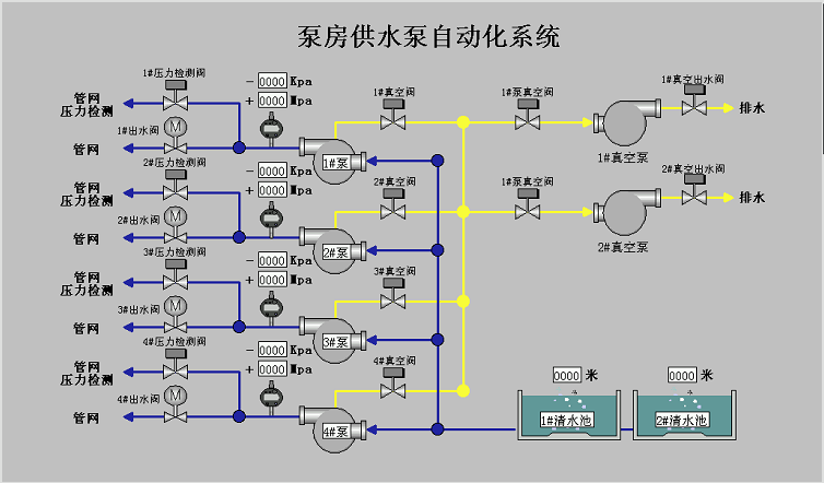 通過西門子SMART200PLC控制每個(gè)濾池的自動(dòng)工作,由工業(yè)交換機(jī)組成以太網(wǎng)系統(tǒng)。主控制室由研華工控機(jī)安裝力控網(wǎng)絡(luò)版組態(tài)軟件,實(shí)際對(duì)各個(gè)濾池工作狀態(tài)的遠(yuǎn)程監(jiān)控。計(jì)時(shí)反沖、定時(shí)反沖相結(jié)合,保證水廠產(chǎn)水的各項(xiàng)需要,生產(chǎn)數(shù)據(jù)設(shè)定好后,無需人為參與。